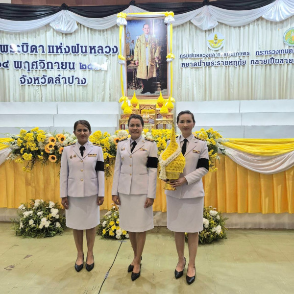 นางสาวอมรรัตน์ คำเวียงสา ผู้อำนวยการศูนย์ถ่ายทอดเทคโนโลยีการสหกรณ์ที่ 10 จังหวัดลำปาง พร้อมด้วยบุคลากร ร่วมพิธีวางพานพุ่มดอกไม้สดถวายราชสักการะ น้อมรำลึกในพระมหากรุณาธิคุณ พระบาทสมเด็จพระบรมชนกาธิเบศร มหาภูมิพลอดุลยเดชมหาราช บรมนาถบพิตร เนื่องใน “วันพระบิดาแห่งฝนหลวง” ประจำปี 2568 โดยมีนายวิวัฒน์ อินทร์ไทยวงศ์ ผู้ว่าราชการจังหวัดลำปาง เป็นประธานในพิธี ณ อาคารหอประชุมจังหวัดลำปาง